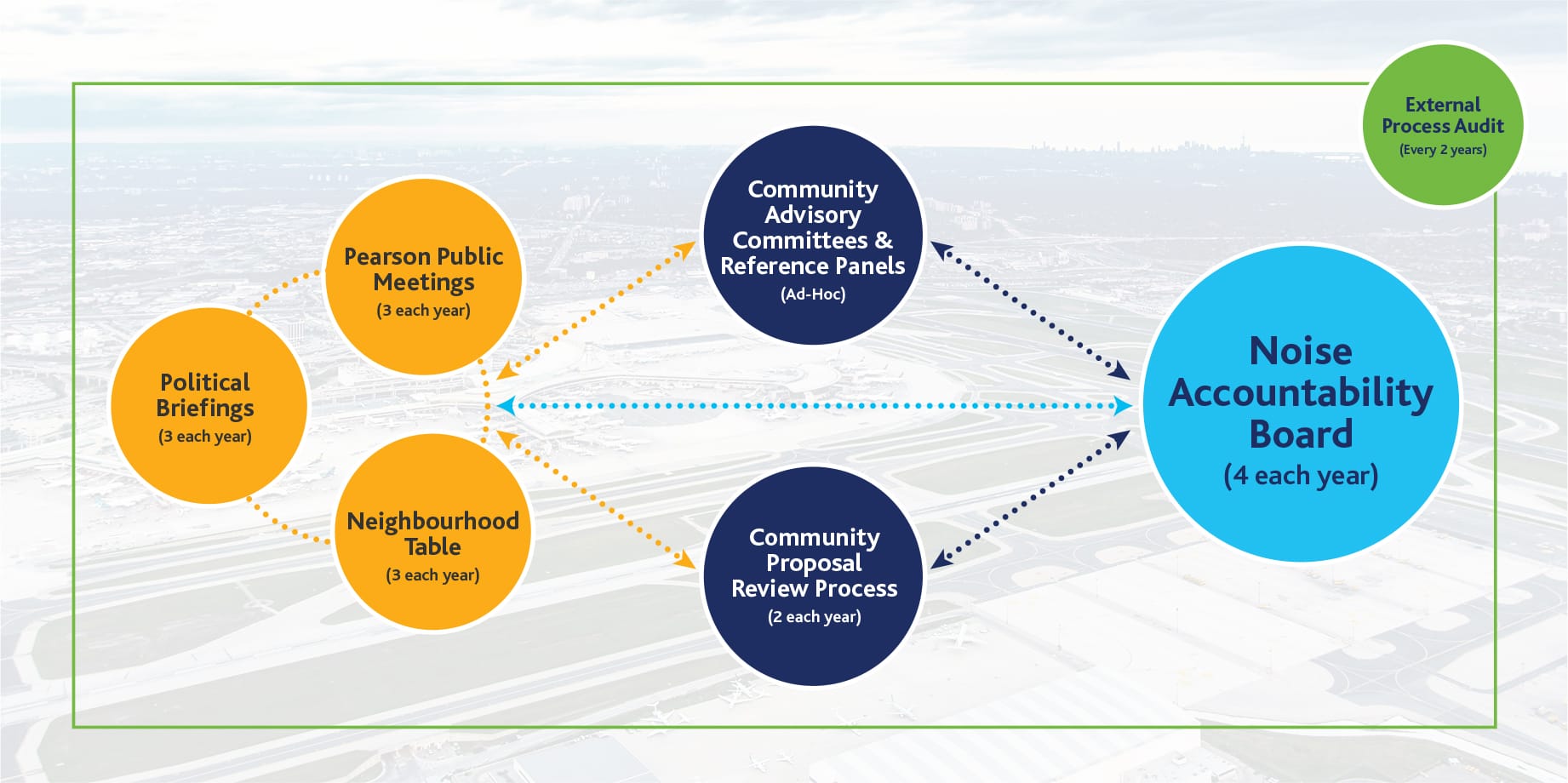 Growing Responsibly, our 2018–2022 Noise Management Action Plan, sets out a five-year strategy for improving how Toronto Pearson manages noise. Created following an international best practices study of 26 comparator airports around the world – and guided by input from more than 3,000 local residents – the plan includes a range of ambitious programs based on the 10 commitments we’ve made to our communities.