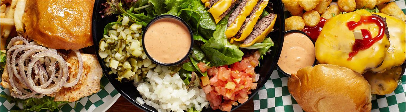 Burger restaurant and sports bar offering single, double and triple burgers with Wahl signature sauce and your choice of toppings.